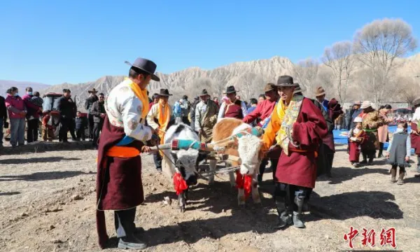 青海贵德:黄河岸畔“二牛抬杠”启春耕