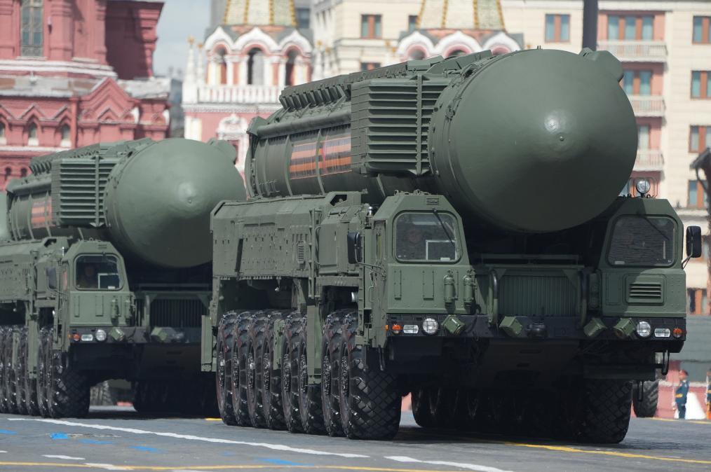 这是2025年5月9日在俄罗斯首都莫斯科举行的纪念苏联伟大卫国战争胜利80周年阅兵式上拍摄的洲际弹道导弹。新华社记者 赖向东 摄