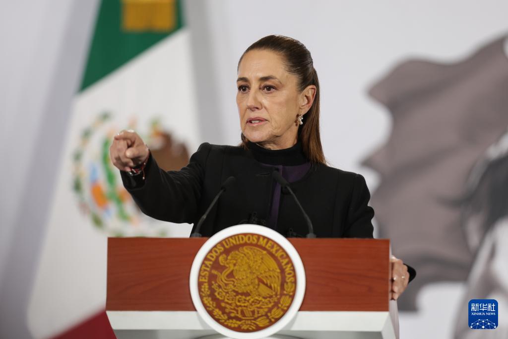 2月23日,在墨西哥首都墨西哥城,墨西哥总统辛鲍姆出席新闻发布会。新华社发(弗朗西斯科·卡涅多摄)