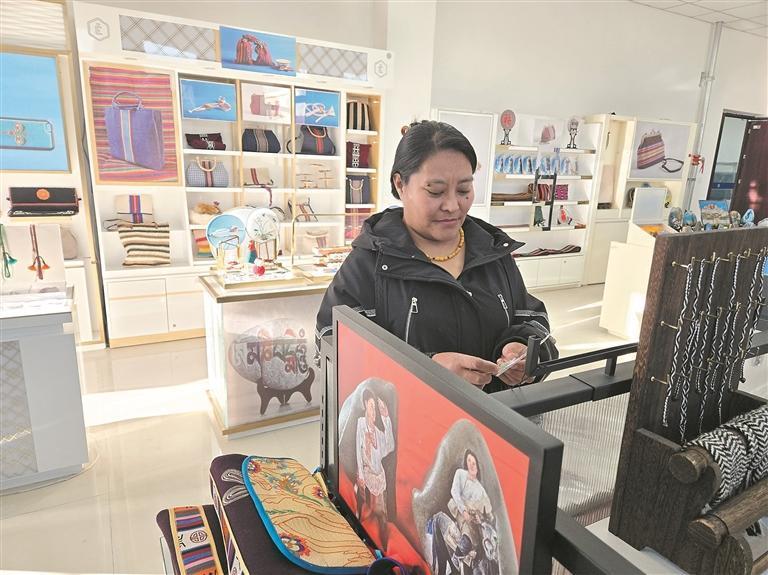 社员在岗巴布民族手工艺品加工专业合作社里做手工艺。