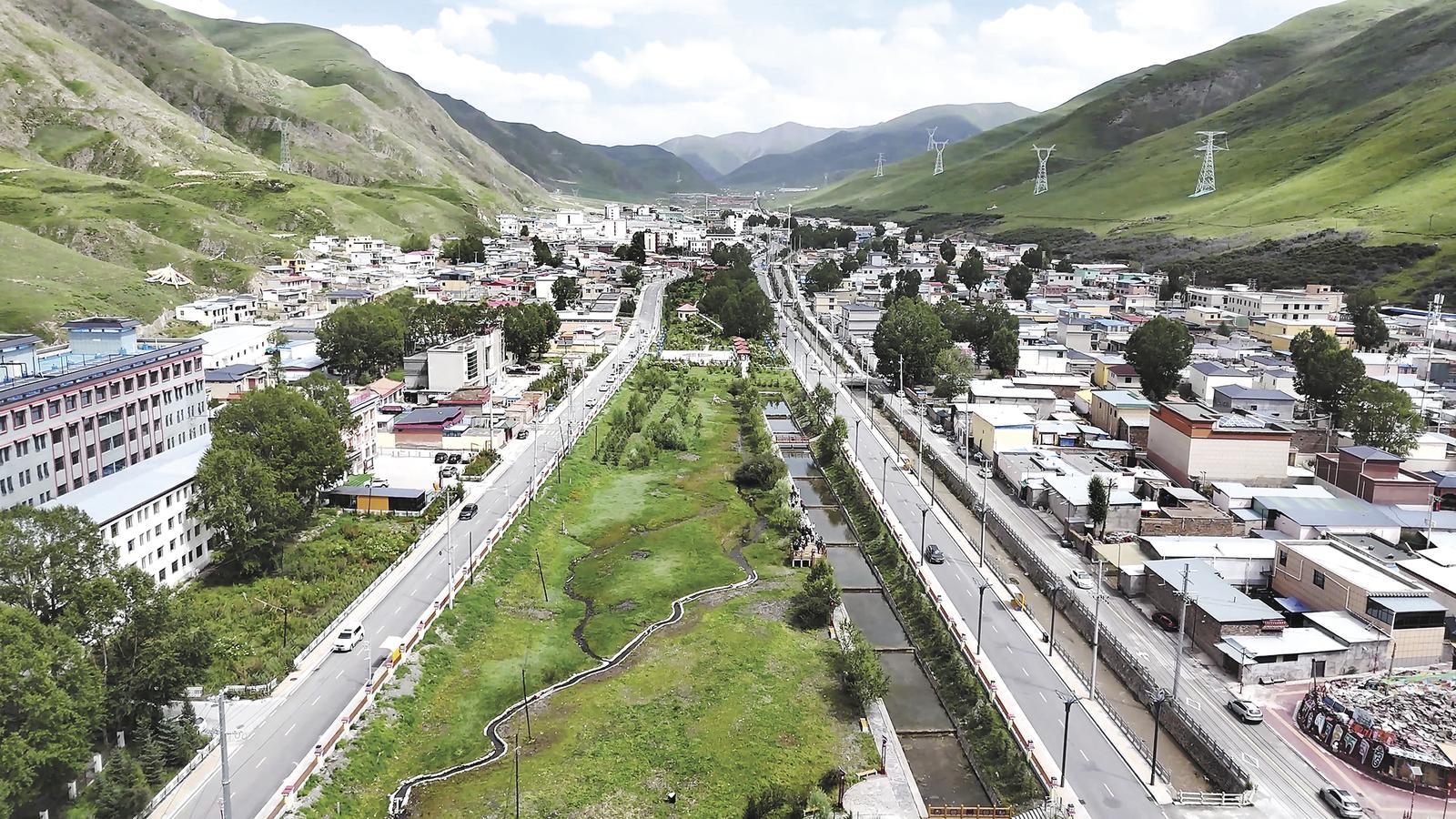 彻底告别昔日“晴天一身土,雨天一身泥”的窘境,如今的称多街头,柏油路面宽阔平整,交通标线清晰醒目,道路两侧绿树成荫、繁花点缀。清晨或傍晚,市民跳锅庄、慢跑健身,尽享市政建设红利。