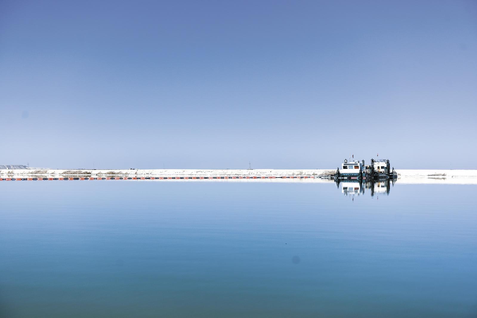青海盐湖股份智慧采盐船在生产中。