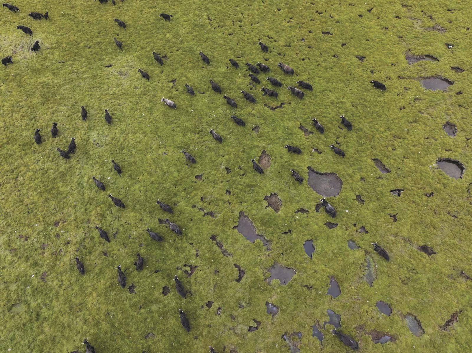 治多草甸上,牦牛群如移动的风景。记者 马振东 肉旦尖措 摄