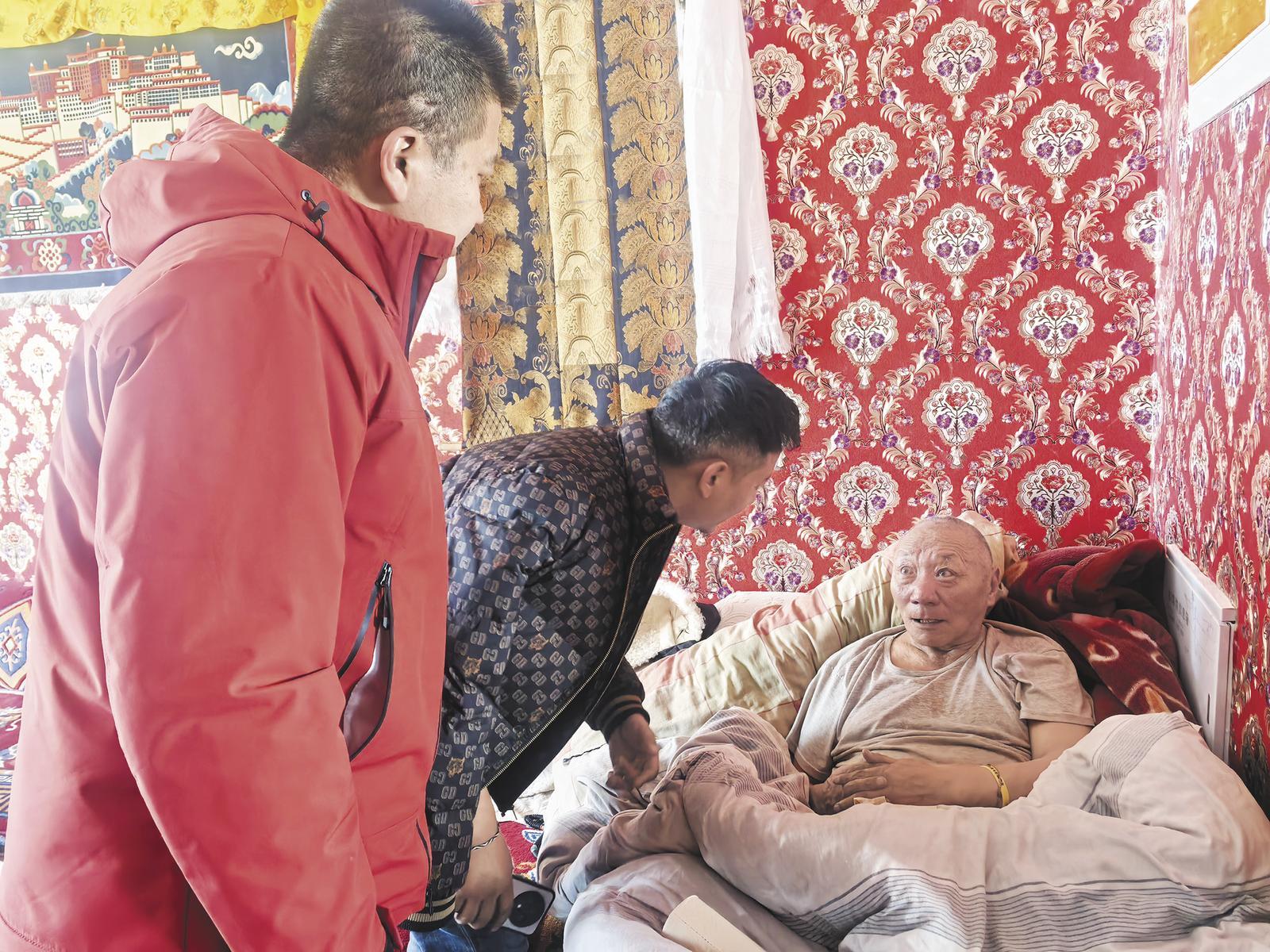 玛多县黄河乡副乡长陈瑞一行走访慰问群众。黄河乡党委供图