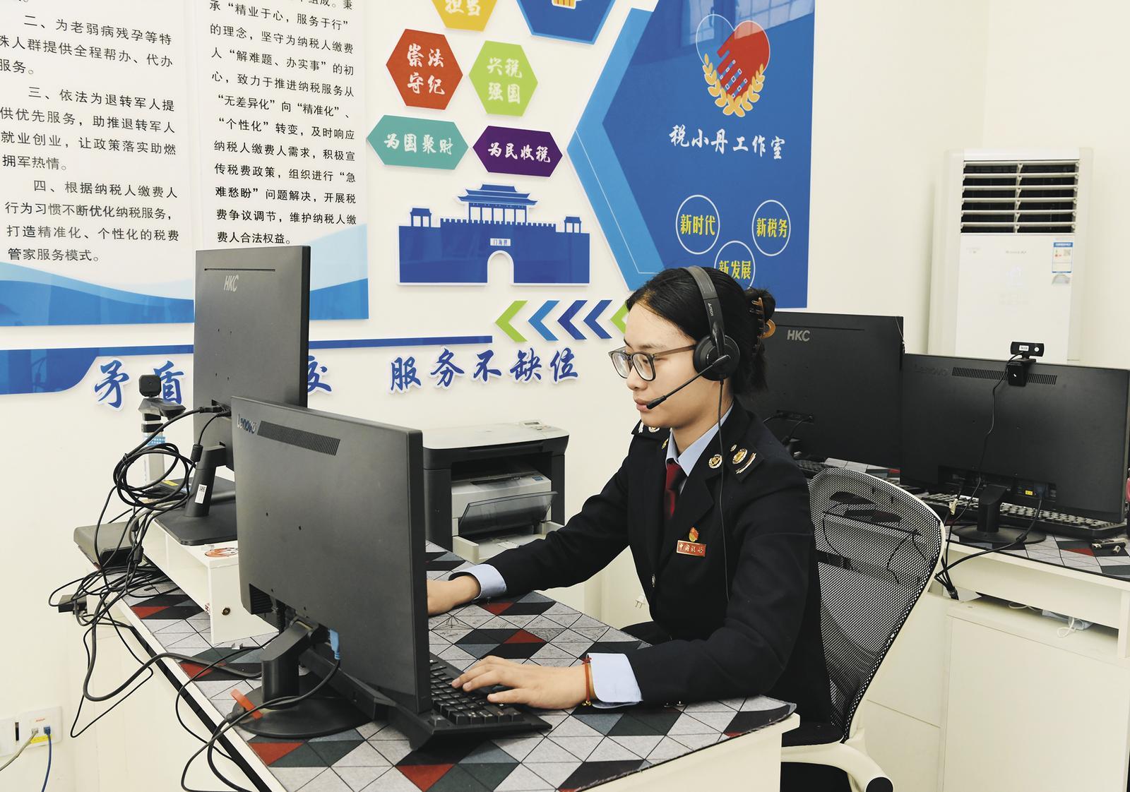 湟源县税务局值班干部与纳税人在线互动。通讯员 李生鹏 摄