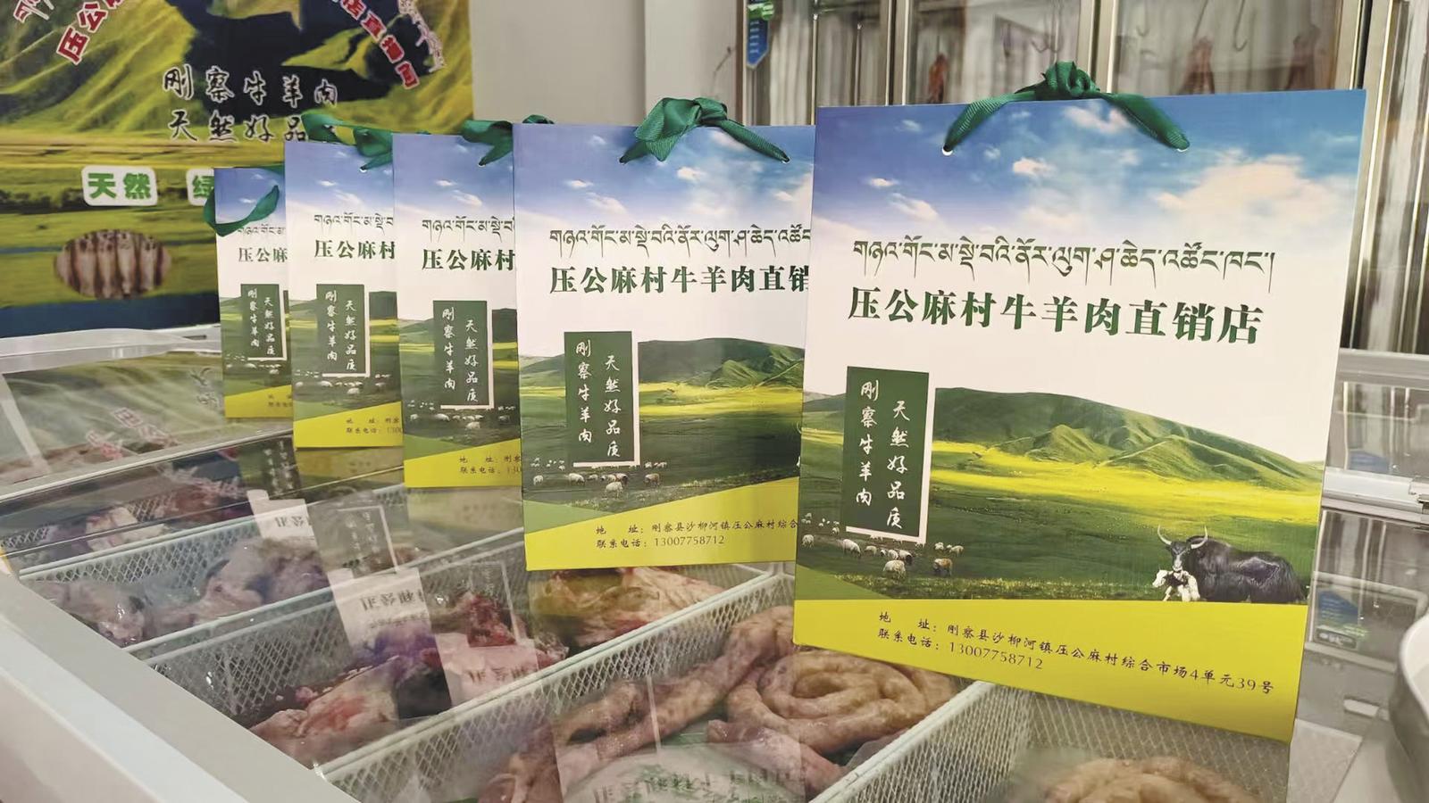 品类丰富的牛羊肉产品。压公麻村供图