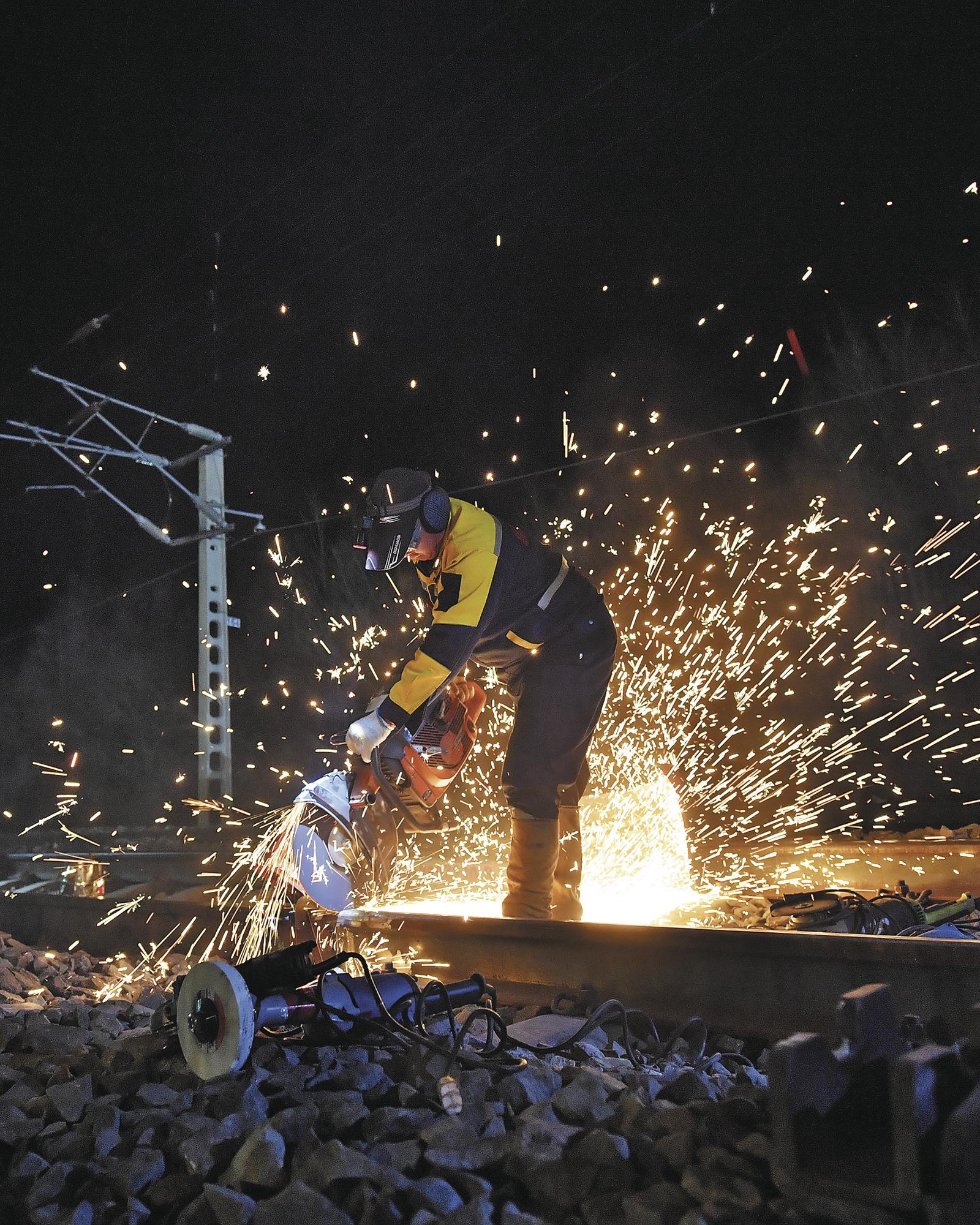 01:00 西宁工务段兰青线青海段集中施工,切割钢轨。