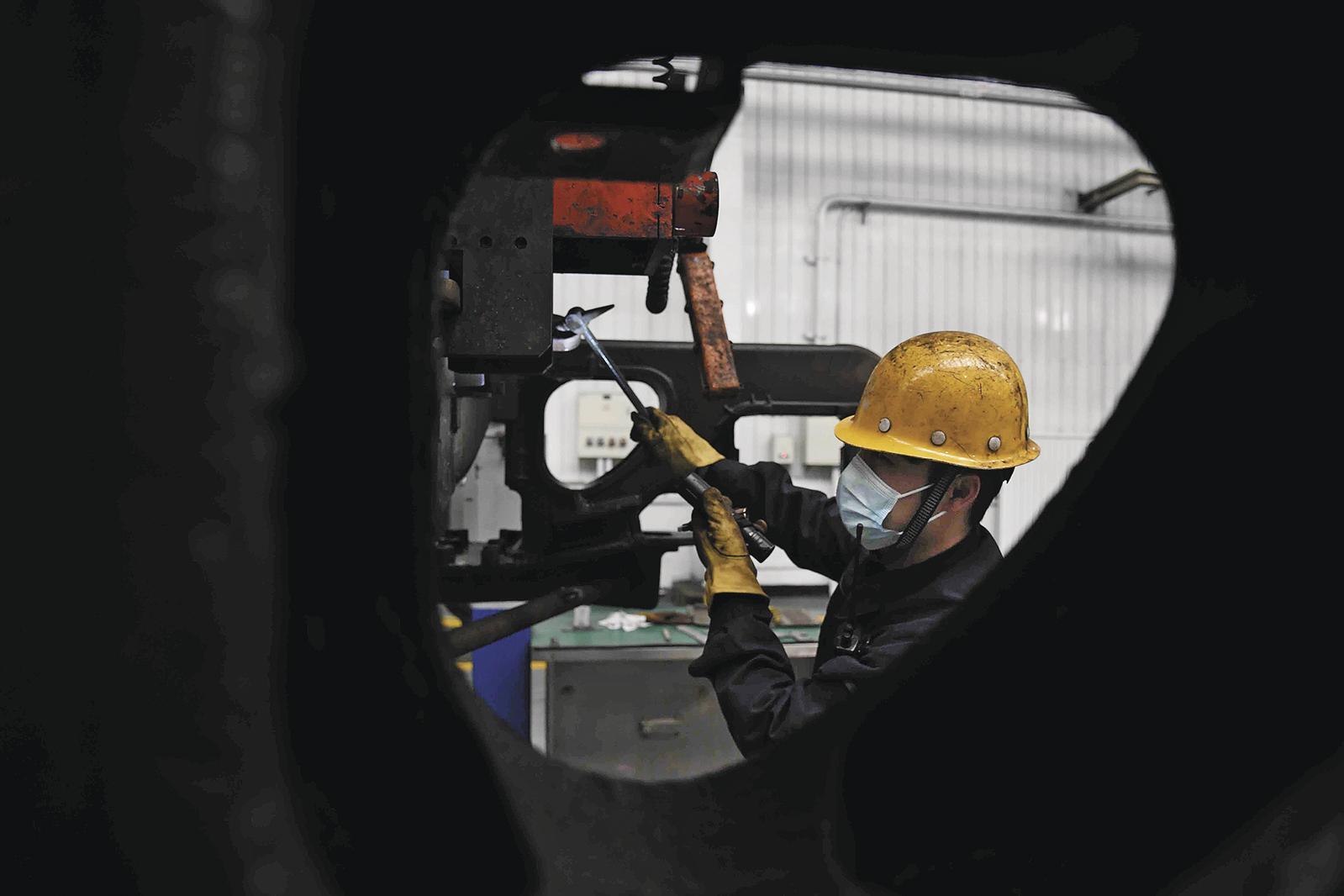 10:00 机修师傅和智能设备默契配合。