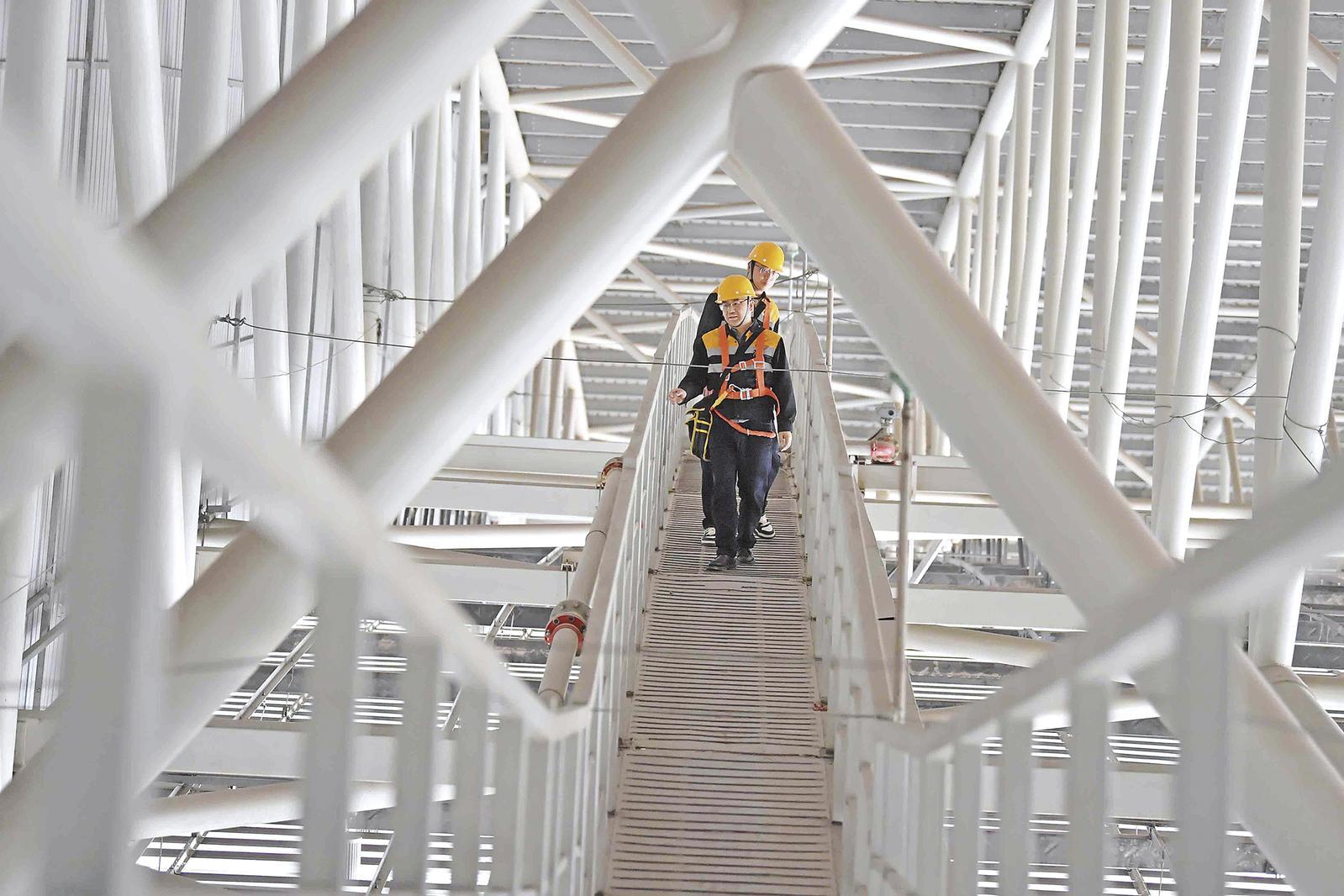 14时许,房建生活段的维修工弯着腰,在狭窄的马道里一点点向前检修。空间小、任务重,可他们从来都是一丝不苟。