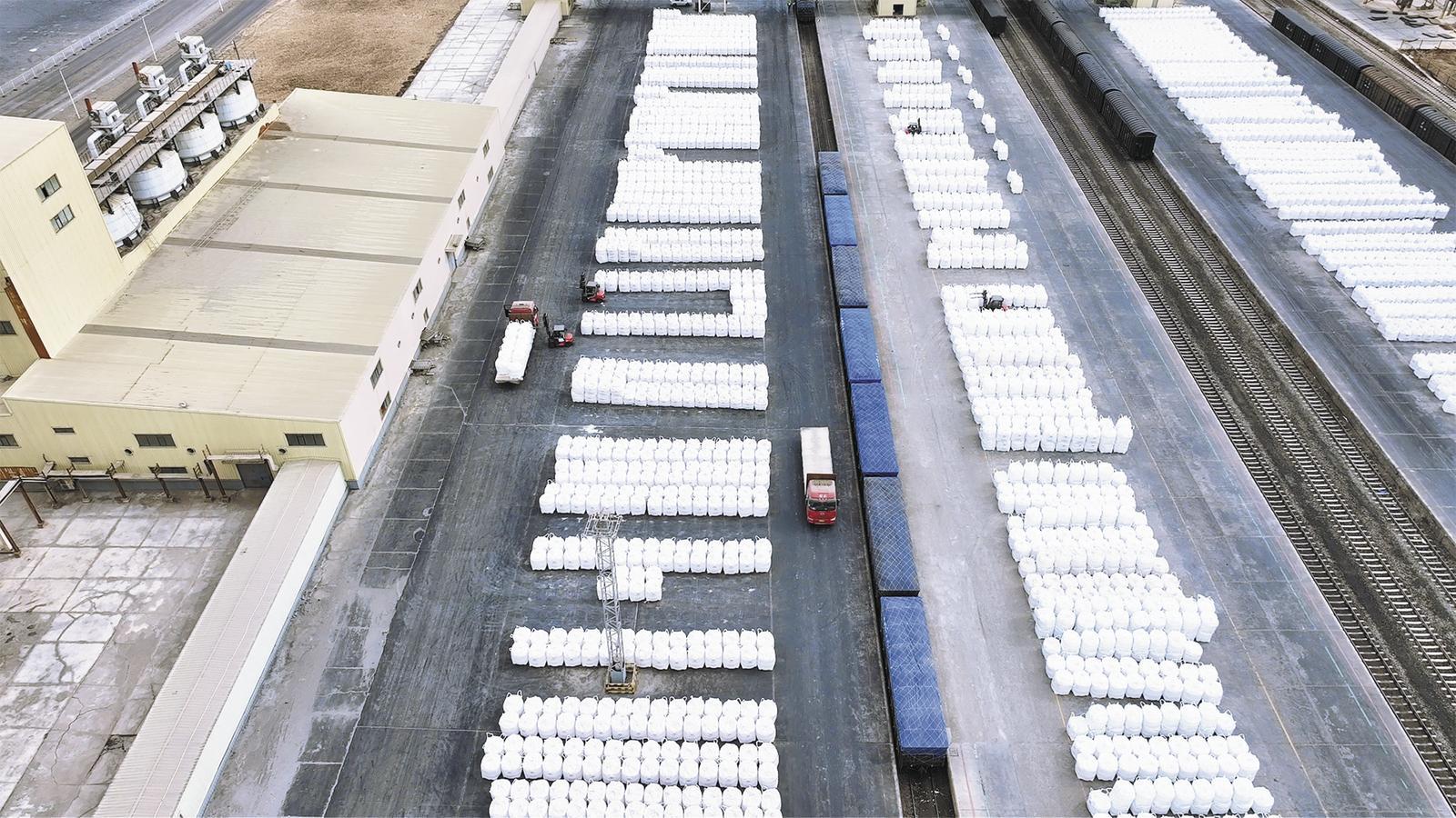 青海盐湖股份货场静待出库的钾肥。记者 张鹏 摄