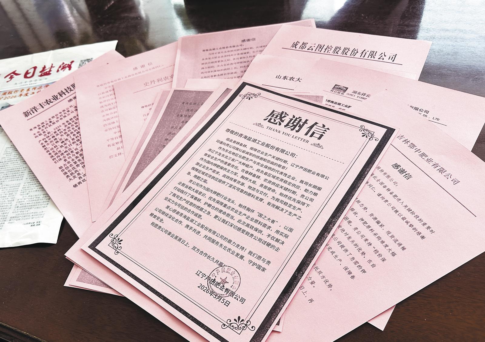 3月,15封感谢信从全国多个重点粮食产区寄往青海盐湖工业股份有限公司。信中,“用了十几年‘盐桥’牌,我们信得过”“青海钾肥是我们这儿的‘老字号’”等朴实的话语,是对“盐桥”品牌最真实的描述。