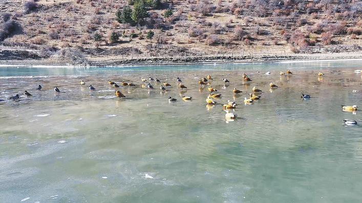 首页 / 新闻 / 涉藏新闻 / 四川 / 正文 赤麻鸭、绿头鸭在冰封的湖面上休憩 来源 : 阿坝日报 作者 : 张成亮 马朝炜 发布时间 : 2026-01-23 字体 :小 中 大 1月21日,赤麻鸭、绿头鸭在冰封的湖面上休憩。冬季,成群的赤麻鸭、绿头鸭等齐聚松潘县鸳鸯桥电站库区,于冰封的湖面上越冬。它们或静卧冰面,或振翅翱翔于库区上空,勾勒出一幅灵动和谐的生态画卷,为当地冬日增添了一道亮丽的风景线。 编辑 : 拉专措