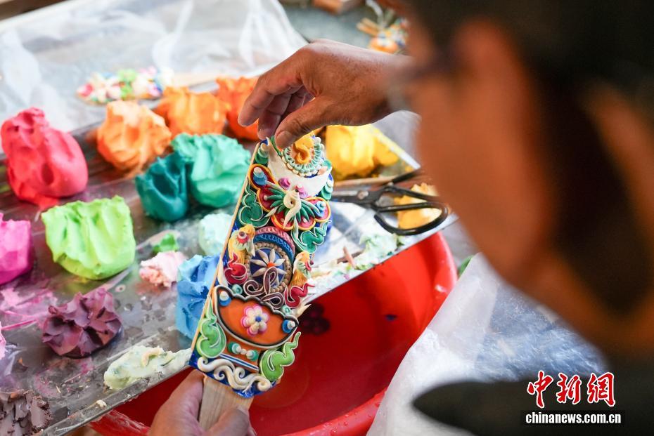 2月4日,随着藏历新年临近,拉萨街头年味渐浓,年货市场上的“孜扎”迎来热销。酥油花藏语称“孜扎”,是藏历新年吉祥物切玛盒的重要组件,也是藏族民众家中必备的年货。酥油花以酥油为主要原料,由匠人纯手工捏制而成,造型涵盖佛像、人物、花卉树木、飞禽走兽等,常见图案包含吉祥八宝、和谐四瑞、长寿图等,承载着藏族民众对新年平安吉祥、万事顺遂的美好祈愿。图为手工艺人在制作酥油花。贡确 摄