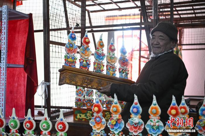 图为市民在八廓商城选购年货酥油花。中新社记者 贡嘎来松 摄