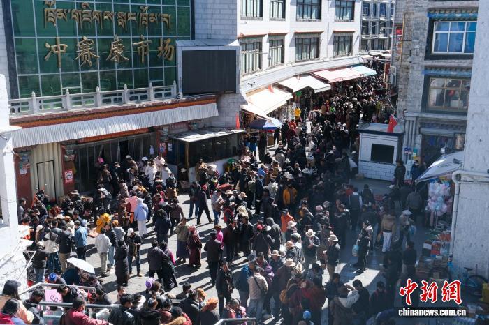 2月13日,拉萨传统年货市场冲赛康周边人流如织。中新社记者 江飞波 摄