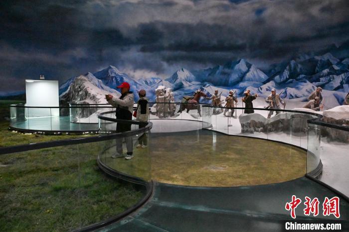 3月1日,迪庆红军长征博物馆内展出的“爬雪山、过草地”互动景观吸引游客拍照。李嘉娴 摄
