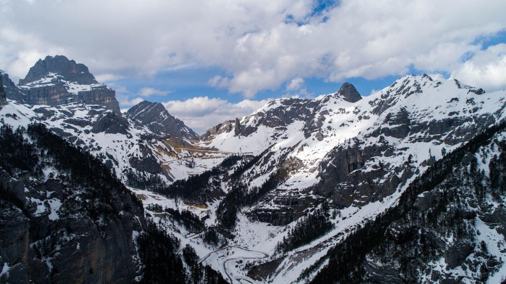 这是香格里拉市巴拉格宗景区的雪后风光(2019年3月16日无人机拍摄)。新华社记者 胡超 摄