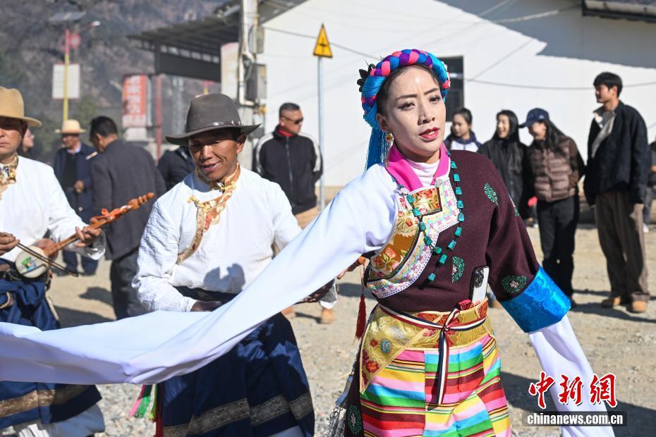 中国藏族网通讯 1月24日,在雪域高原云南省迪庆藏族自治州香格里拉市仓觉村,全网粉丝量超30万的藏族姑娘扎史永宗和丈夫扎史培楚举行了一场打破线上与线下、地域与时空、传统与现代多重“次元壁”的婚礼。婚礼上,新人穿着传统藏式婚服,按习俗完成接亲、祈福等仪式,亲朋好友围在一起跳锅庄舞。同时,现场摆放着现代风格的婚纱照,用花艺等做装饰,还通过5G网络直播,让没能到场的网友也能身临其境,传统婚俗在现代表达中焕发新生。