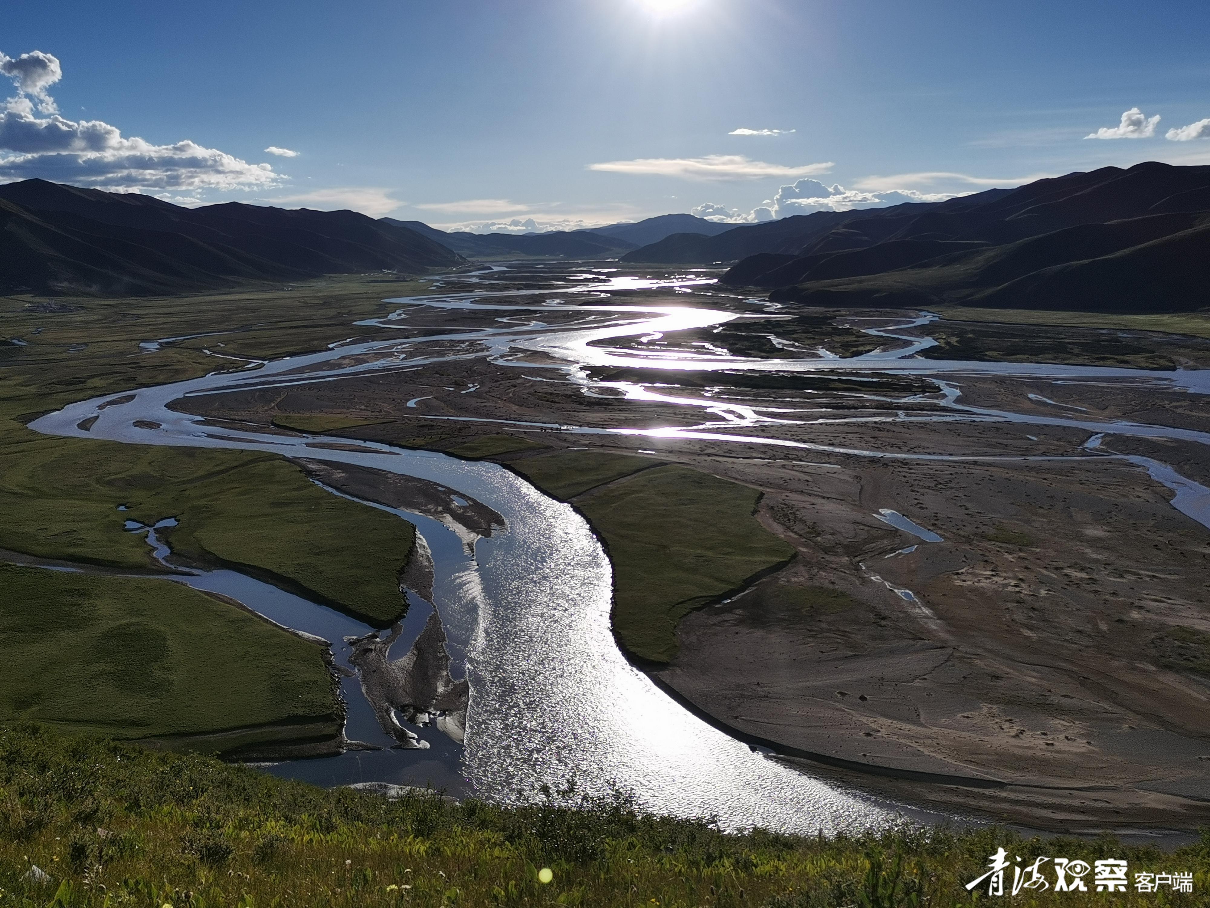 不负青山绿水,方得金山银山。盛夏时节,位于久治县门堂乡门堂村北端的草滩上,野花遍布,湿地里赤麻鸭、夜鹭等野生鸟类栖息,与百米外的黄河风情园,共绘出一幅人与自然和谐共处的美丽画卷。