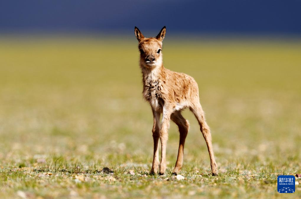 鲁确塘草原上脐带尚未脱落的小藏羚羊(6月17日摄)。新华社记者 姜帆 摄