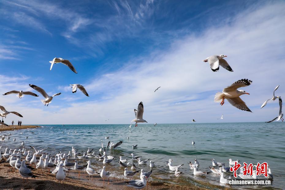 10月22日,青海省海南藏族自治州共和县青海湖畔,水鸟成群。中新社记者 马铭言 摄
