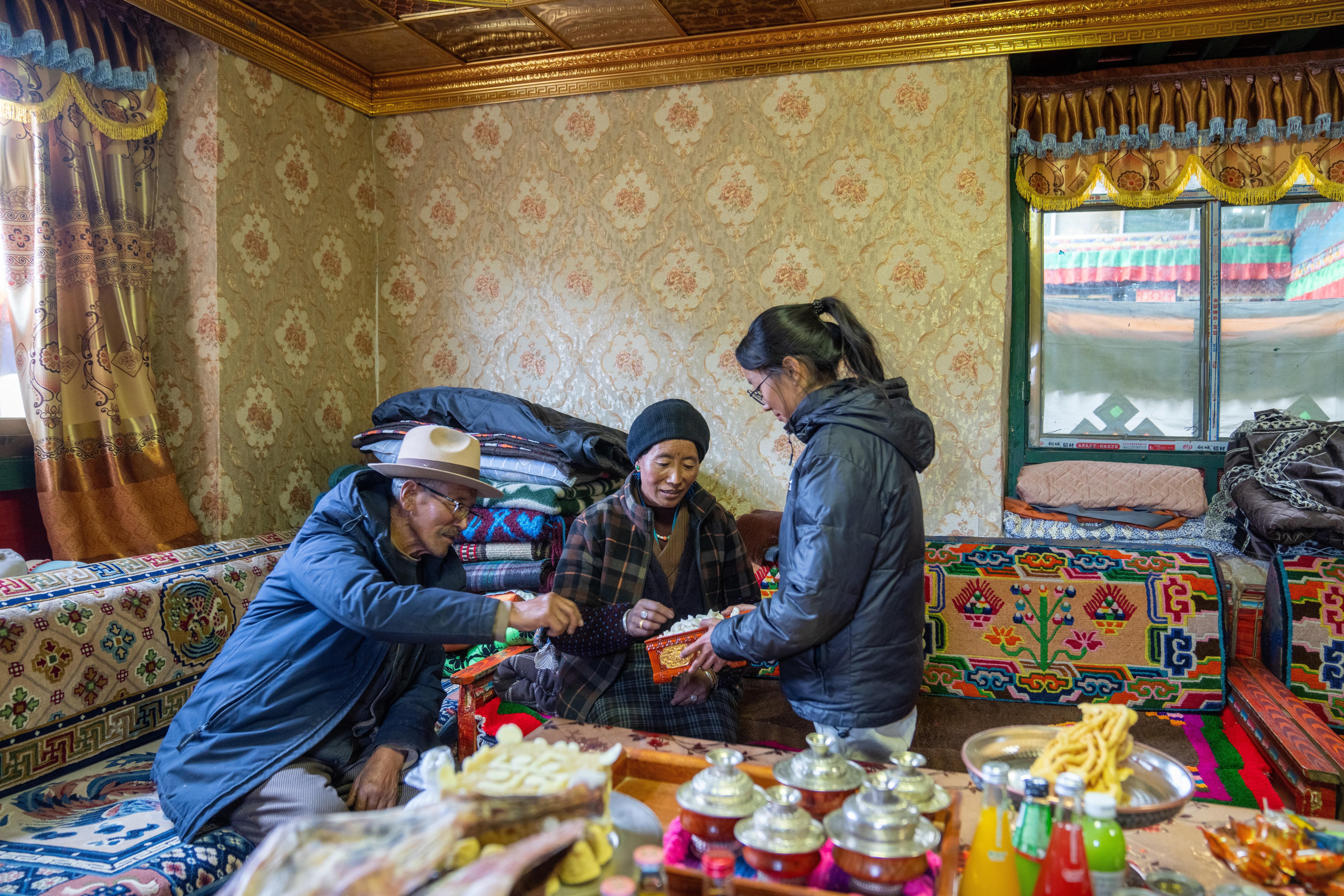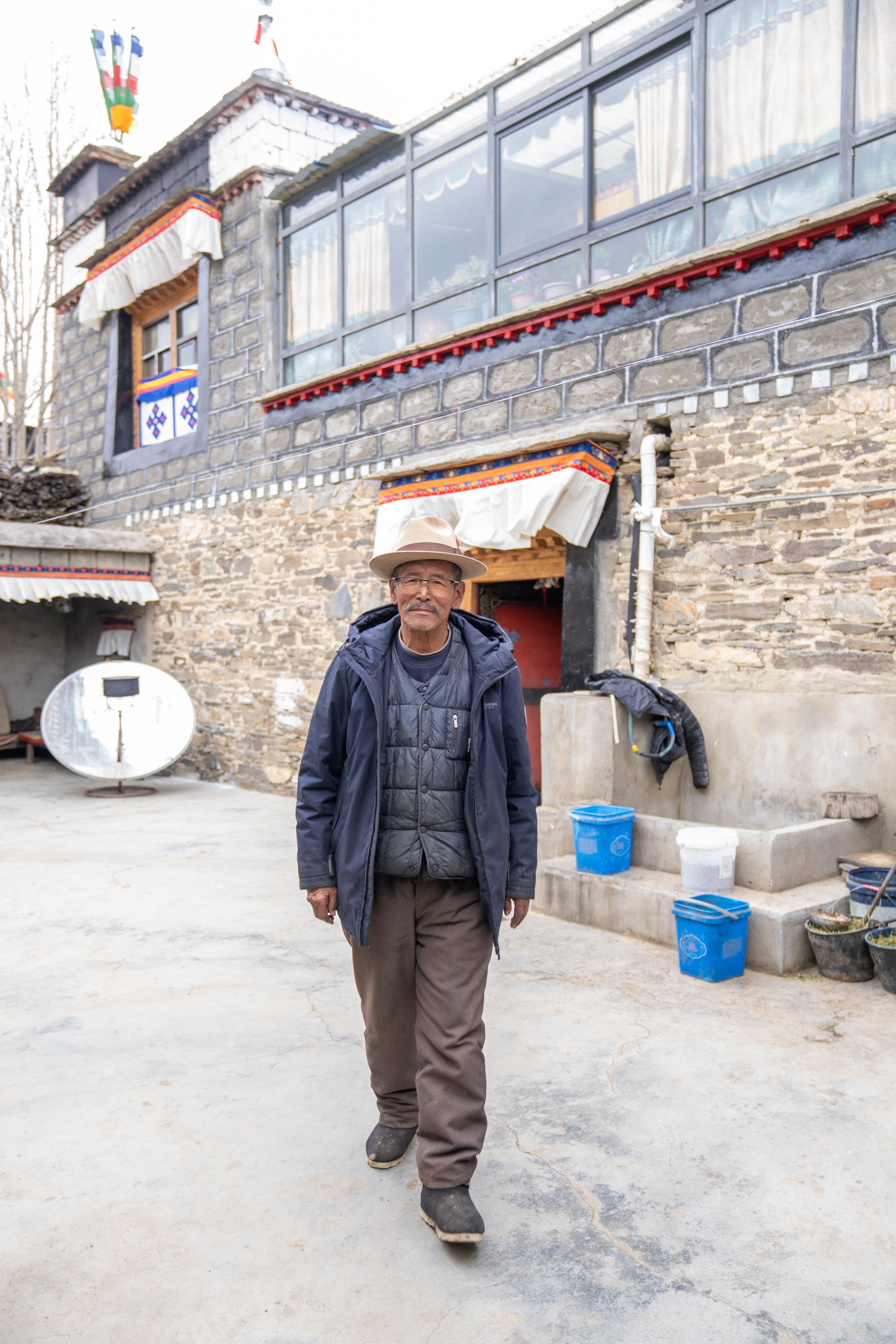次旦说,平时二女儿央金在家照顾他的生活,女婿外出务工。次旦老人生活闲适,村里一有文艺演出,他就过去观看。